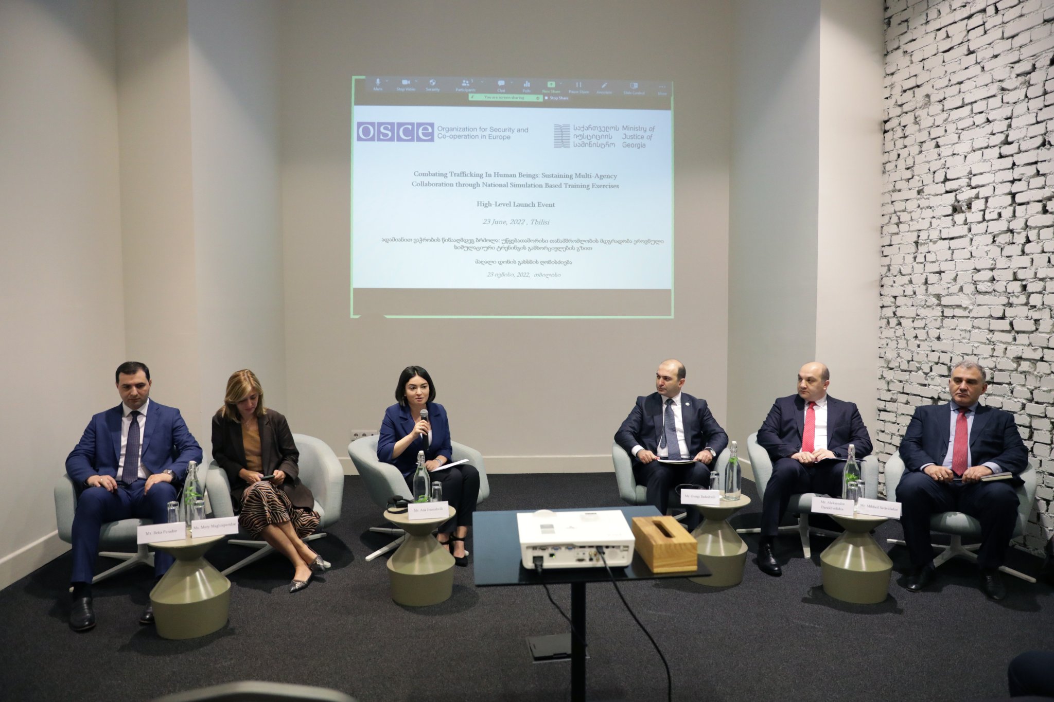 The project “Fight against Human Trafficking: Sustainability of Interagency Cooperation through National Simulation Training” was opened today by Deputy Minister of Justice Beka Dzamashvili. The event was attended by the OSCE Special Representative and Coordinator for Human Trafficking, Mr. Valiant Ritchie; Deputy Ambassador of Switzerland to Georgia, Mr. Urs Bier; Also representatives of government agencies, non-governmental and international organizations and embassies.