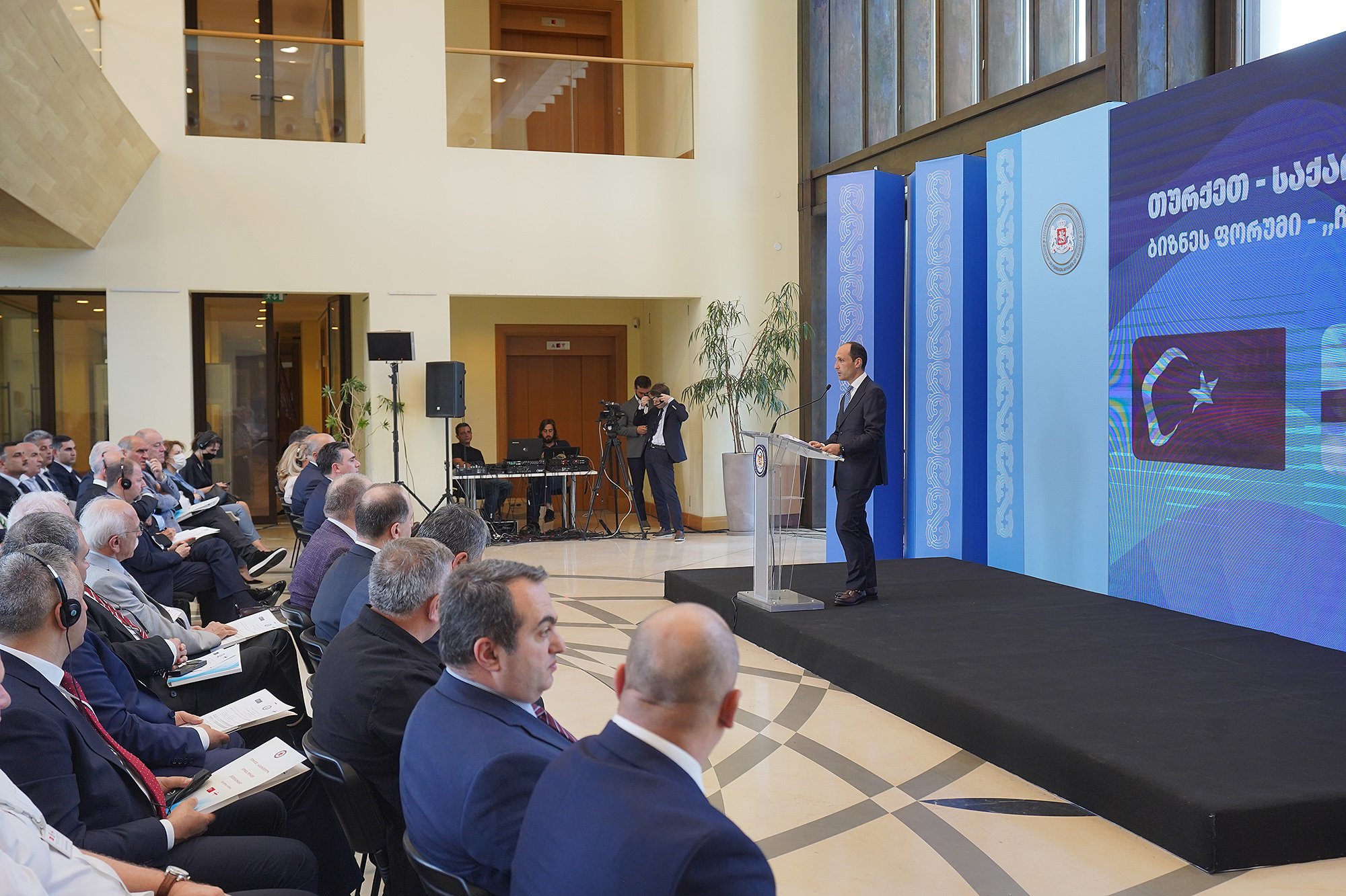 After the official welcoming remarks, representatives of the Georgian and Turkish public and private sectors, including Mikheil Khidureli, Director of the Produce in Georgia Agency, made presentations on the Georgian investment environment and entrepreneurial opportunities and the successful results of the Georgian-Turkish economic cooperation.