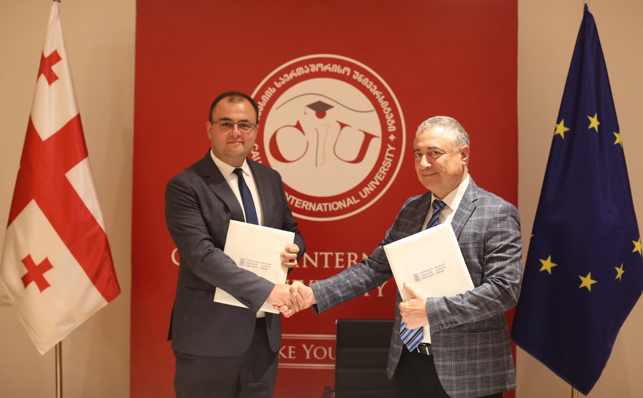 The document of cooperation was signed by the Minister of Justice Rati Bregadze and the Rector of Caucasus International University Kakhaber Kordzaia.